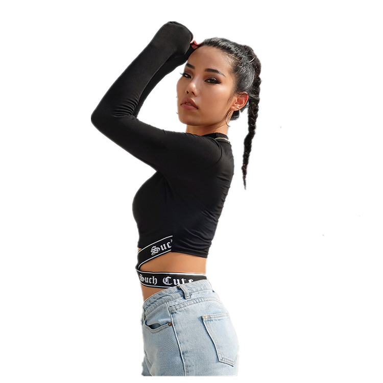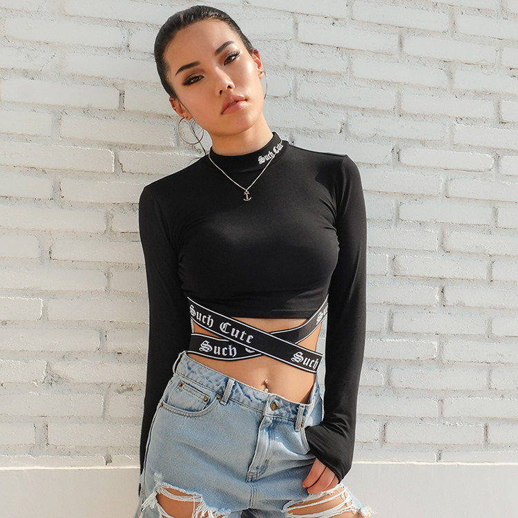 Product Type | 2019 trendy long sleeve sexy crop top with straps wholesale custom logo female long sleeve streetwear solid crop top sexy for women |